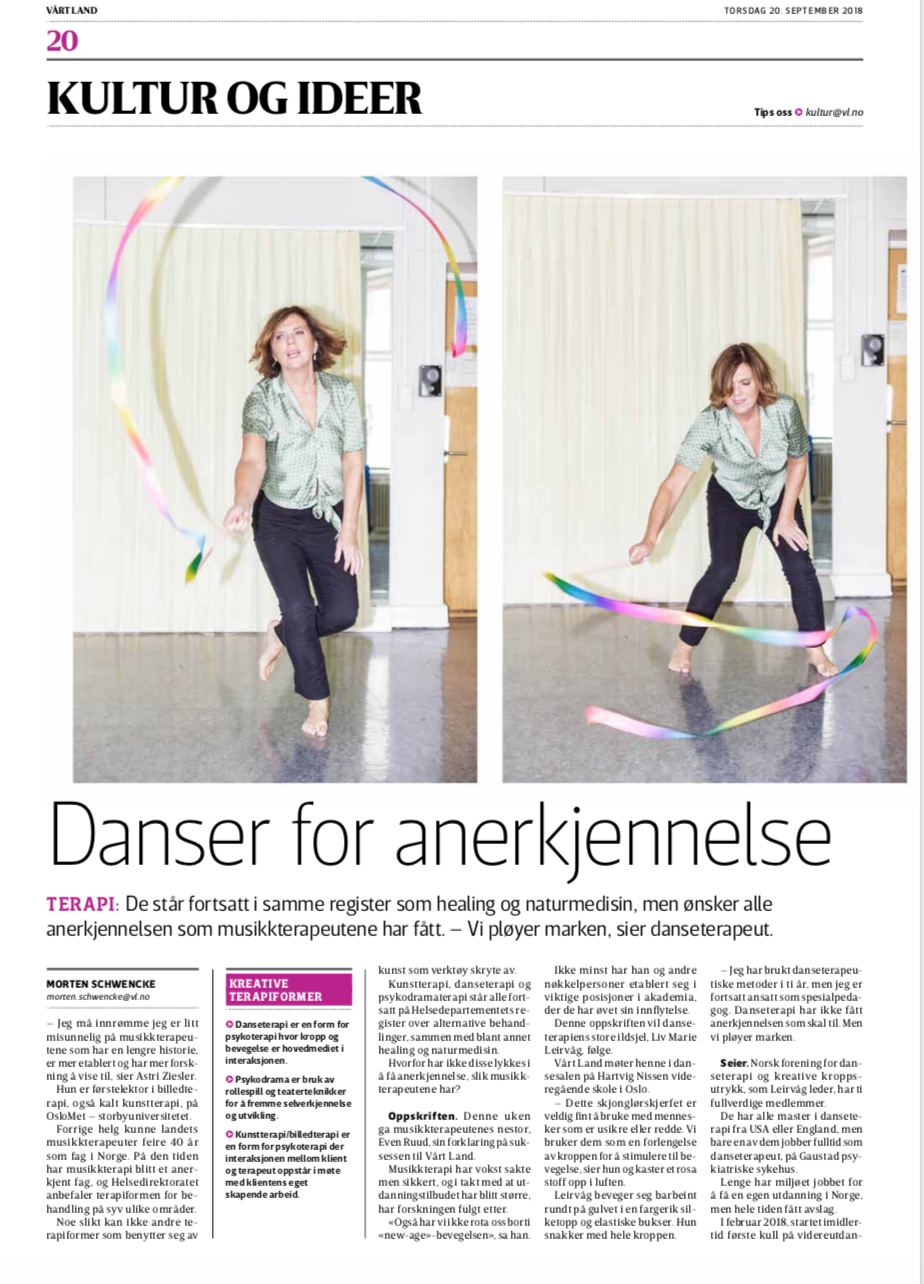 Tidligere styreleder og Psykodrama terapeut Helene Bakke ble intervjuet i artikkelen.
